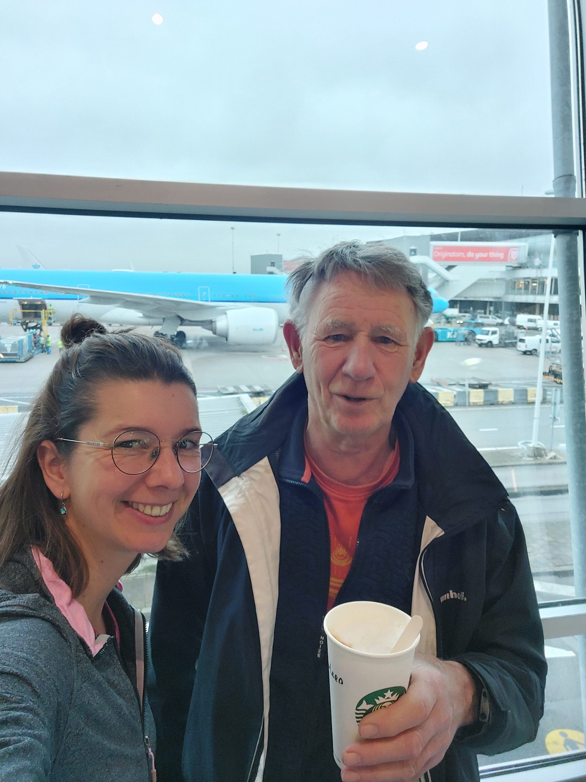 Dus ’s morgens de trein gepakt van Zwolle naar Schiphol. Dat gaat voorspoedig en dan op Schiphol inchecken en eindeloos wachten tot het vliegtuig vertrekt.