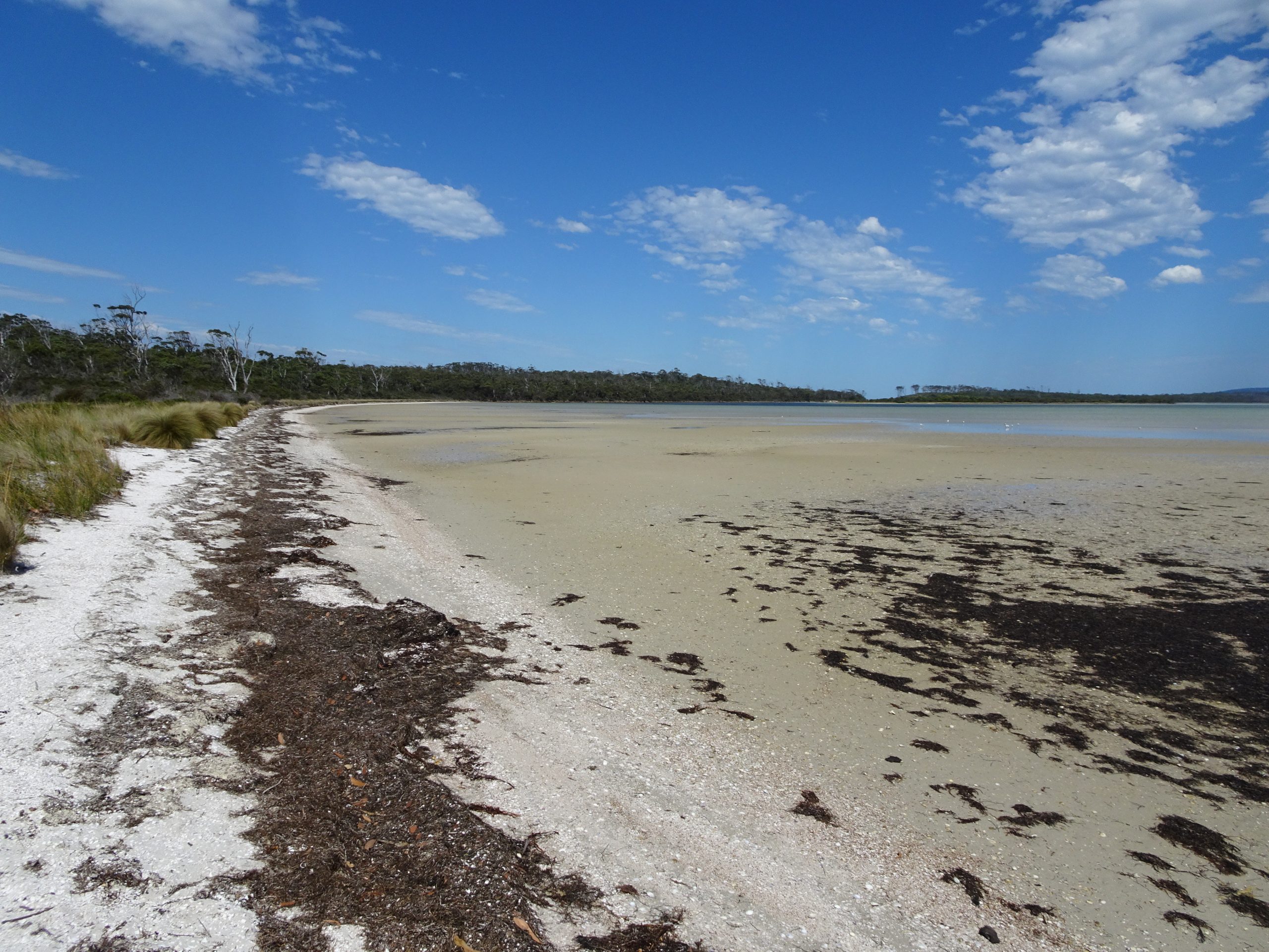 Het is inmiddels 23 febr. We gaan van Southport naar Great Taylors Bay daar weer voor anker en natuurlijk een wandeling aan wal gemaakt naar de vuurtoren van Bruny eiland. Het is dik 4 kilometer lopen, niet zo ver, maar met alle bergen is het nog een flinke klauter het uitzicht prachtig alleen zijn veel buien in de lucht dus wordt uitzicht regelmatig onderbroken door een grijze lucht. Als we weer terug aan boord komen liggen we weer heftig te rollen, tijd om te verkassen naar een andere baai. Het wordt een stevige tocht naar Isthmus Bay de wind haalt flink aan dertig knp. we gaan op zijn hardst 12.5 mijl per uur wel leuk maar ook spannend varen want je wilt de boel wel heel houden.