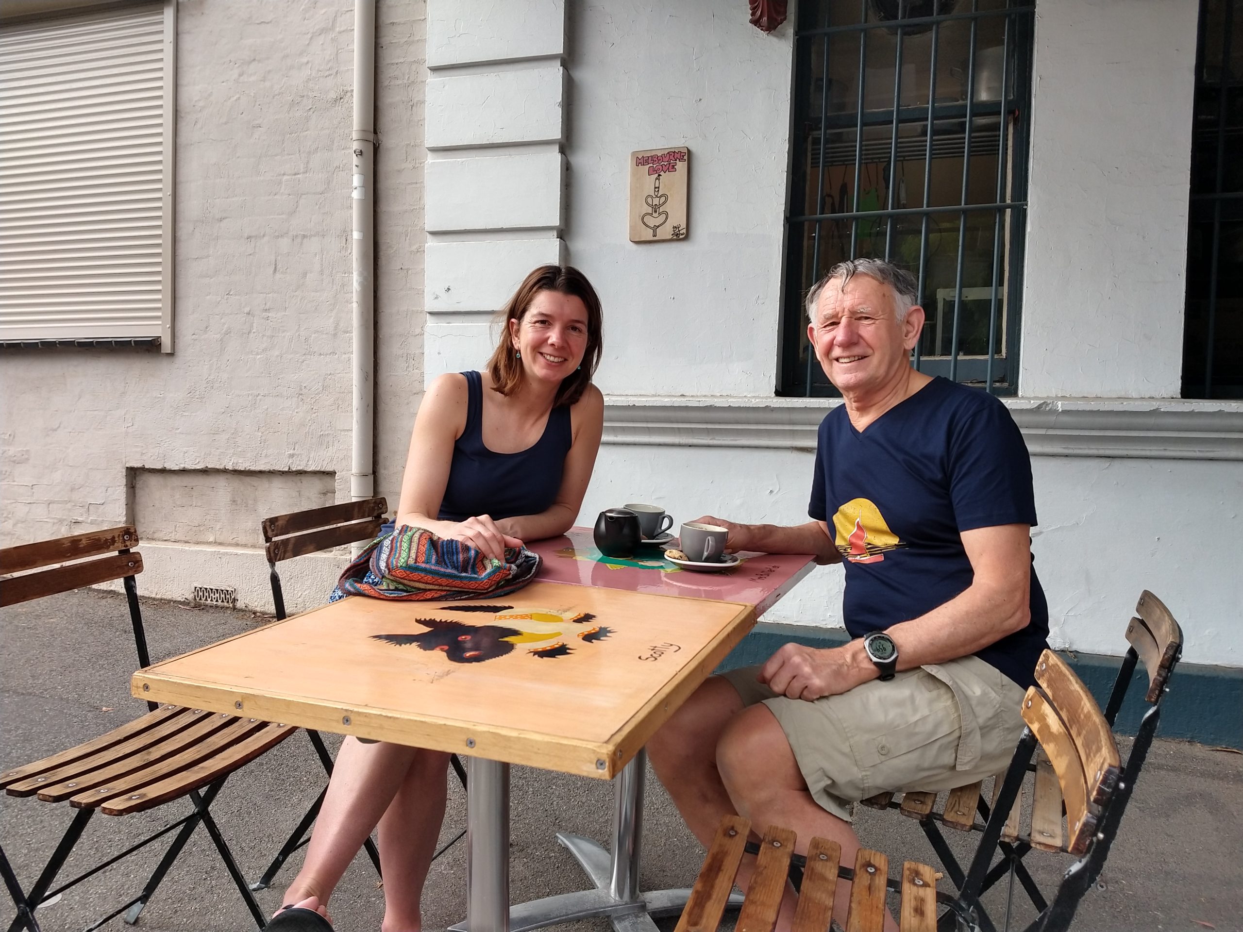 Het is inmiddels zondag en we hebben voor vandaag afgesproken met de fam. Lans, een broer van Anneke. Eerst een ontbijtje scoren want een Hostel heeft wel een keuken maar geen eten daar moet je zelf voor zorgen. Wij lopen een eindje de stad in komen een lokaal café tegen waar je een kop koffie en een tosti kan kopen.