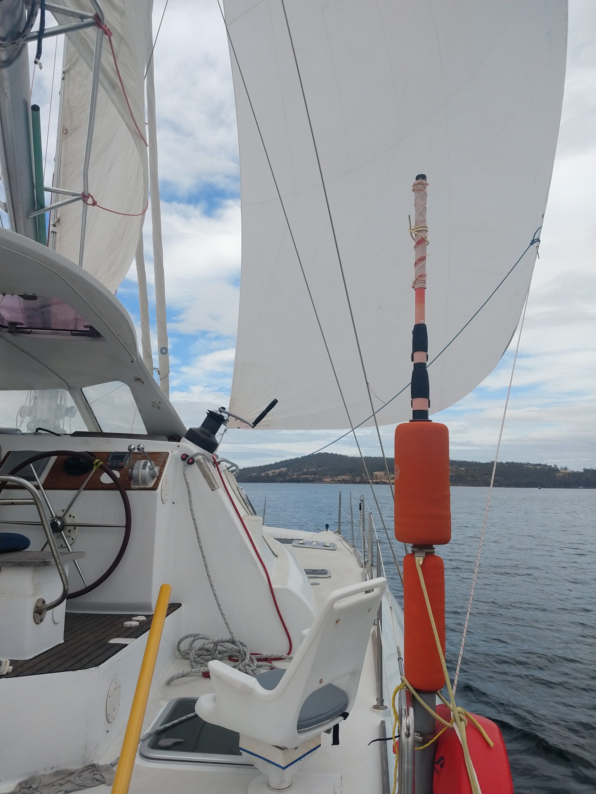 Zo onze eerste zeilreis gaat naar Bruny eiland er is niet veel wind maar we komen relaxt aan op het eiland, we ankeren in een baai en we doen alles op het zeil, de motor mag alleen mee doen als het echt niet anders kan. We gaan met de bijboot naar het strand en maken een mooie wandeling over het eiland. Het is denk ik een jaar geleden dat er een bosbrand geweest is maar de natuur hersteld zich en de bomen lopen weer uit. Toch wel bijzonder dat de natuur zich zo snel hersteld, de vlammenzee gaat er kennelijk snel door heen en de eucalyptus bomen kunnen er wel tegen want die lopen weer uit. Terug aan boord is het inmiddels etenstijd en in de avond gaan we spelletjes doen.